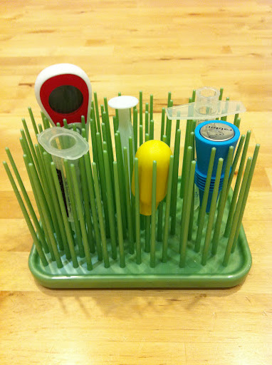 I go shopping.  This doesn’t really have anything to do with Mike being away as I often have a desire – a need, actually – for retail therapy.   On Tuesday, though, when I had one cranky kid home from school with a cold and a long day and evening ahead with no relief in sight, a trip to The Container Store seemed like a really good idea.  I bought some really important organizational products for the house, including two acrylic Lazy Susans for my bathroom, ajewelry stand, this really cool spiky plastic thing that holds whatever theheck I want, a pack of gift tags, a storage unit for Dylan’s Legos, and – because Dylan was with me – a yellow toy box shaped like a giant Lego.  I heart The Container Store (and Dylan does, too).