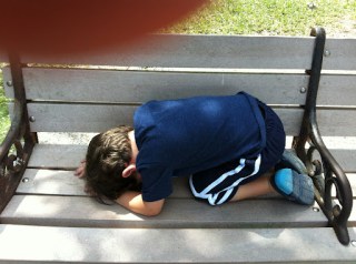 This was Riley’s not-so-subtle hint that the zoo trip was over. (Sorry about the finger on the lense…I was tired, too). Riley rolled up into a ball like a roly-poly pill bug and I had to carry him (Strong Mama!) until we reached the gift shop where he had a miraculous surge of energy, so much so that he was able to pick out a bag of plastic frogs as a souvenir from our special day. Tired little Dylan mustered up the energy to pick out something, too.