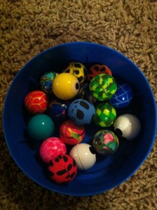 A: Approximately $20. This is a lot of money and I feel bad about how much I gave them. I’m also surprised at how much cash I actually had in my wallet. I blame it on the cough syrup with codeine that clearly impaired my judgment, but at least they won some prizes. Indeed! We are the proud owners of eighteen colorful, useless (and will be missing within an hour) bouncy balls.