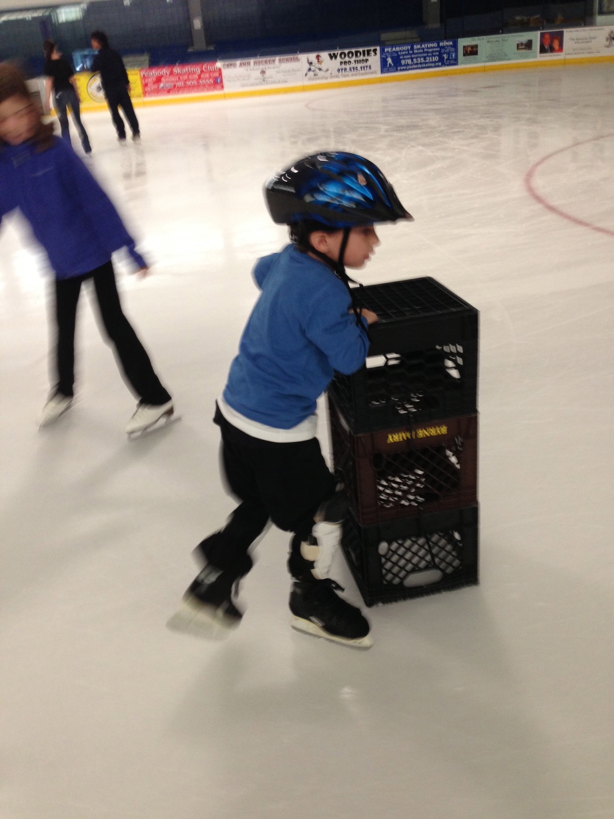 I have never seen Dylan so determined. He hugged the wall for a few laps. He leaned on a stack of milk crates for a few laps. Every time he fell, he got right back up, and in the end, he held his own. There was no fear or anxiety, just pure resolve, courage, and pride.