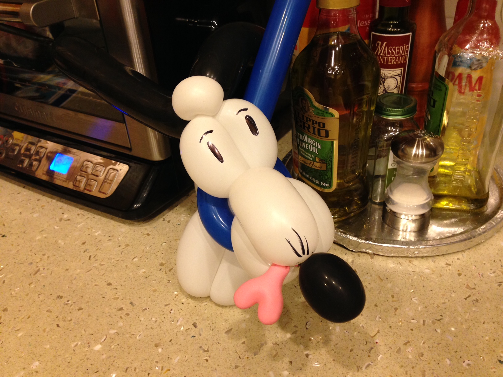 The balloon artist ended up making a dog that looked more like Snoopy and than a Boston Terrier, but it was good enough for Riley.