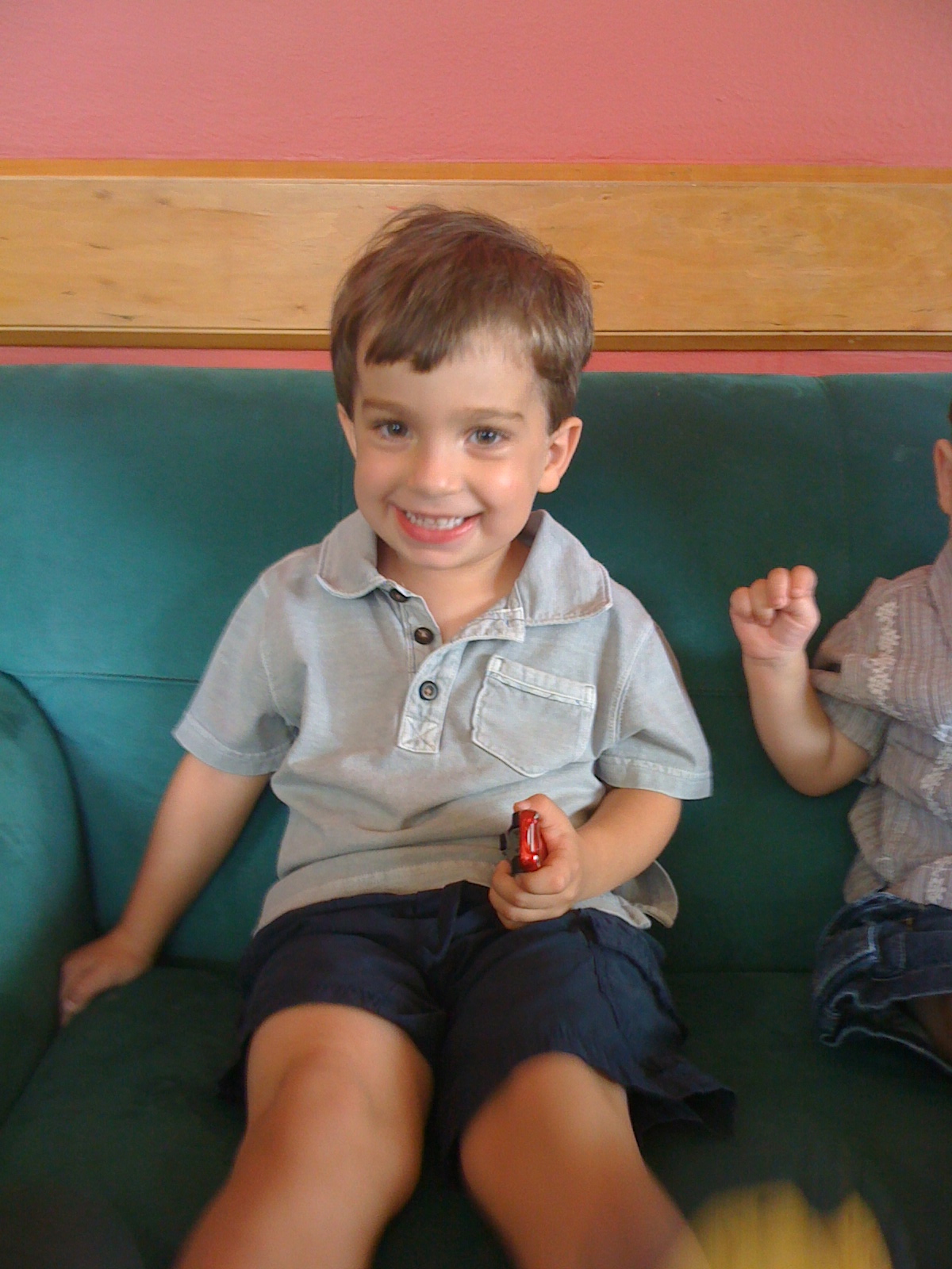 He climbs into the chair and onto the booster seat and our hairdresser says, “You’re going first today?”