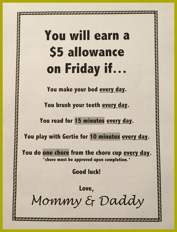 But it’s time. I’m sure of it because as often as I preach gratitude to my kids, I don’t often see it in action. I’m tired of their constant wants, and I’m sick of cleaning up the clutter of things (that I buy for no justifiable reason) that bring them instant and fleeting gratification but no long-lasting joy. I want to teach them that happiness doesn’t come from a plastic toy in a blind bag, that money has financial and moral value, and that the true reward for a job well done is in the earning rather than the spending of money. That, and I want to distract them from Minecraft and YouTube for a little while each day. Also, I’d like them to aim better when they pee, and I can’t think of a better way to do that than to make them clean the toilets.