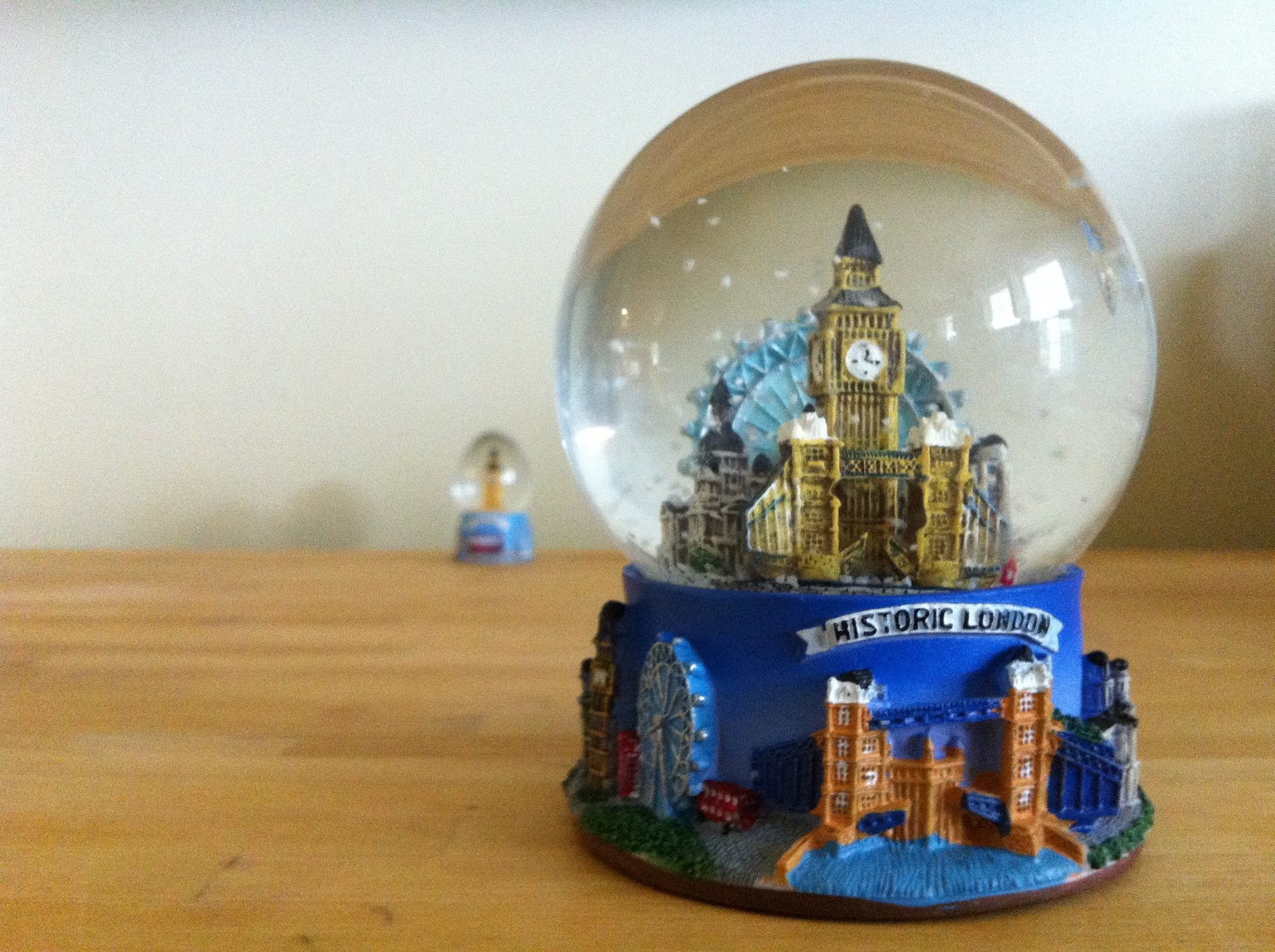 According to Mike, the snowglobes were easy to find. The problem was that upon returning to the United States (in Newark) and going through customs, Mike had to exit and then re-enter the security area to fly home to Ft. Lauderdale. With two snow globes. Filled with liquid. In his carry-on bag. TSA officials deemed the liquid-filled snow globes with “all the London buildings” suspicious, and gave Mike a choice – dump them or check them. Geesh.