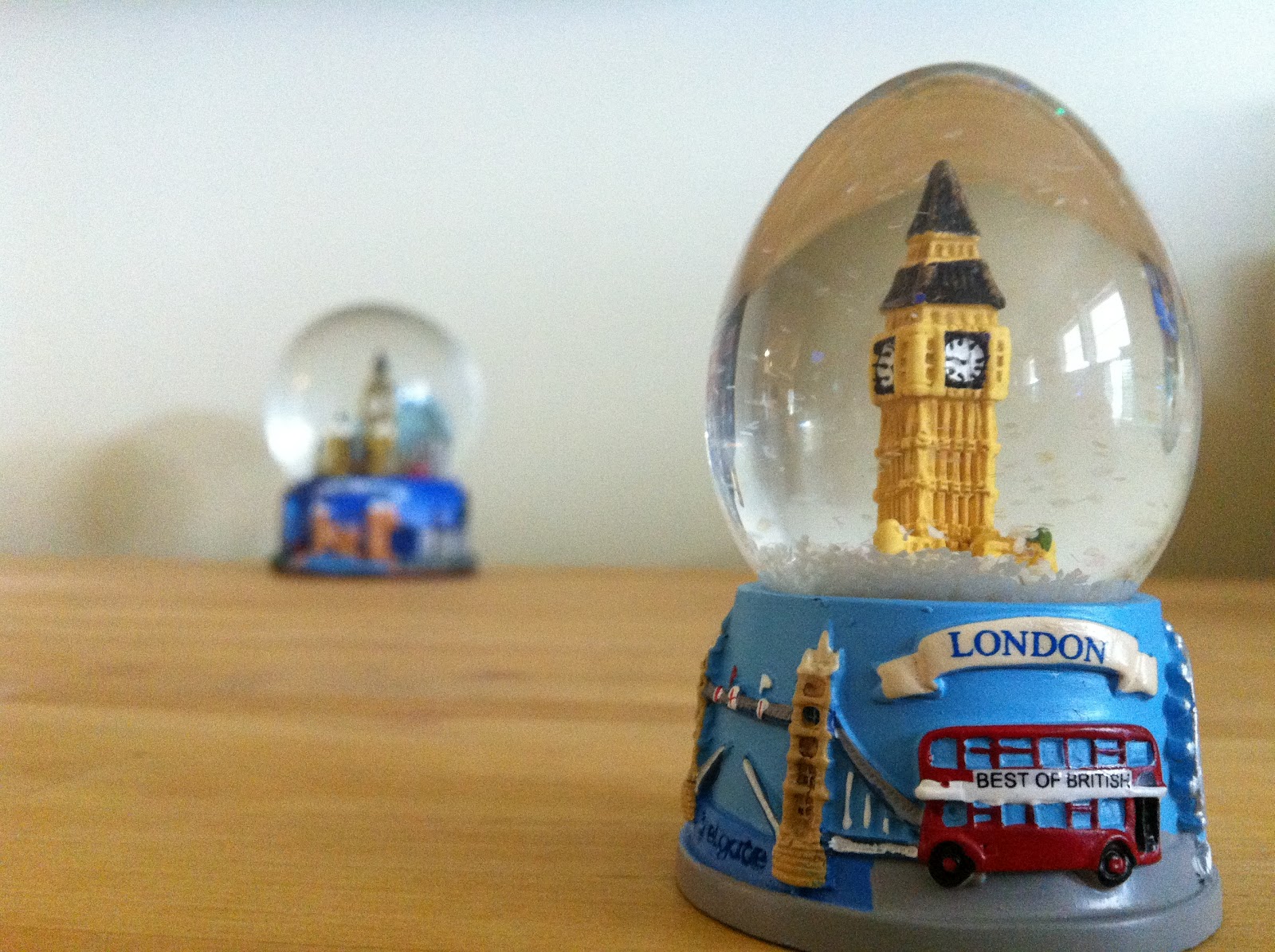 Whenever Mike goes away on business, he brings home a special surprise for the boys. This time the destination was London, and the boys requested snow globes with “all the London buildings.” Okee-dokie.