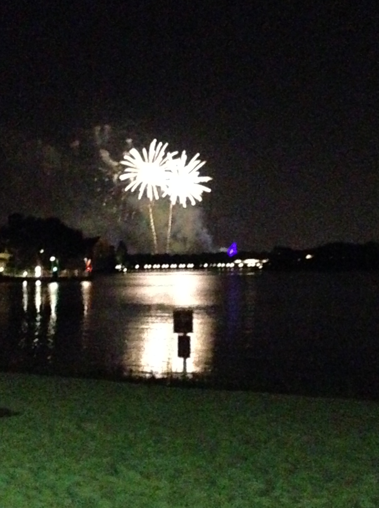 Magic Kingdom fireworks seen from the beach at Disney’s Polynesian Resort.