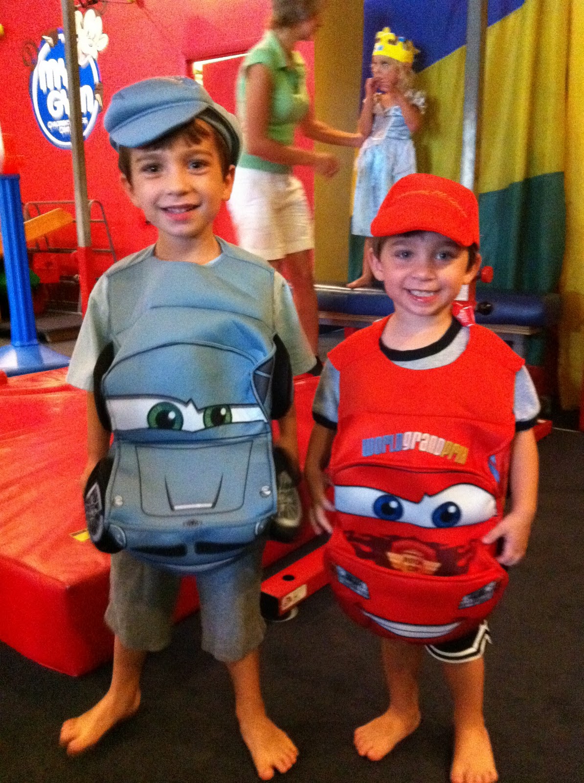 I had some small toys in the closet for just this kind of situation (a Lego helicopter for Dylan and a set of mini-construction trucks for Riley…one of which he hurled at my head the next day), and they had no trouble letting the candy go. In a few years, this advice might be preposterous, but for now it was just right.