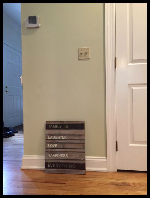 3. Artwork on the walls. Almost! Hanging a picture on the wall suggests permanence in either wall color or furniture placement (or both). As soon as Mike finds his level, which is buried somewhere deep in the garage, this sucker is going up.
