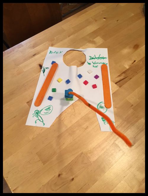 5. Riley’s artwork. Glue sticks, pipe cleaners, stickers, markers, and popsicle sticks are within reach (and every Sharpie we own has been hidden), which means Riley has resumed his art regime. This (phallic) masterpiece is a dinosaur. Obviously.