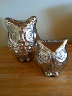 My mom, who is aware of my new owl fascination, is bringing me a sterling silver owl bank that’s been in the family for decades. I’m grateful she’s offered it to me, and I can’t wait to add it to my new collection. I’ll keep it on my bedside table (until Dylan and Riley decide it belongs to them), so when I go to sleep at night and wake up each morning I’ll be reminded that a head full of happy stories is more than enough to feel content. Maybe that will keep me from going back to West Elm and Crate and Barrel to buy the owl tree ornaments. Probably not. Plus, I’ve already googled “owl menorah” and found some cute ones online.