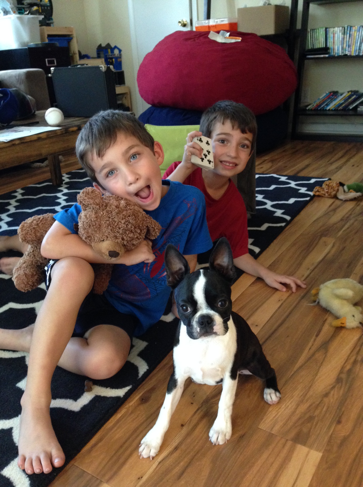 A few days later, on a walk with Gertie, the boys and I bumped into our neighbor, Bud, who was standing at his front door with a new puppy. I’d never seen the puppy before, and it struck me as odd, because Bud had a much older and bigger dog named Bunker.