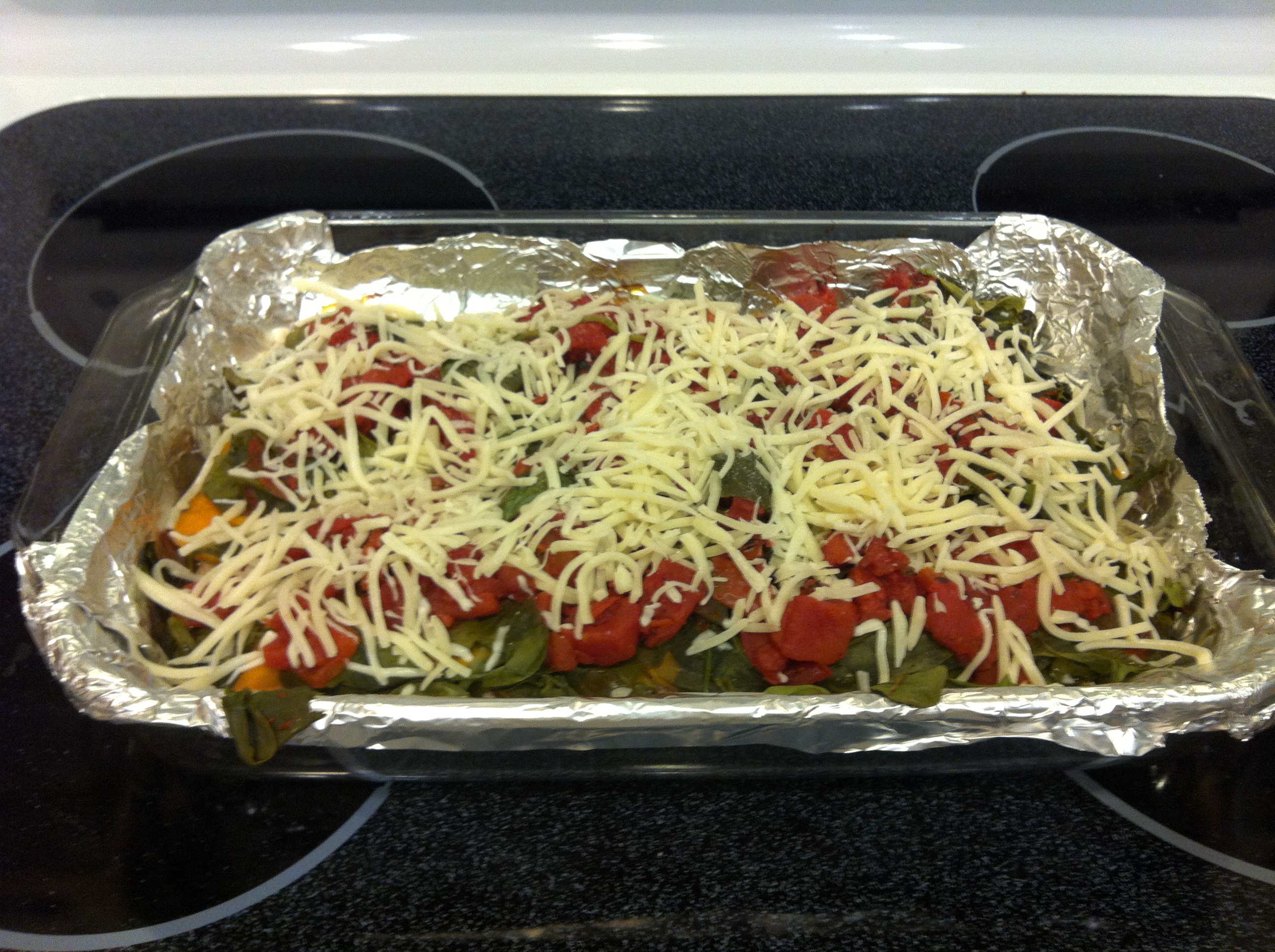Speaking of which, I do a lot of cooking, but I’ve never made a casserole.  I had no recipe, but fear not, I did a little bit of research before coming up with mine.  Casseroles are actually quite simple to construct.  You need a protein (unless your doing a vegetarian casserole), starch, vegetable, liquid, and cheese.  If only putting Dylan and Riley to bed without a Kindle Fire, LeapPad, or portable DVD player were as uncomplicated!  After much careful consideration, I decided to make ground turkey casserole with onions, sweet potatoes, spinach, diced tomatoes and mozzarella cheese.