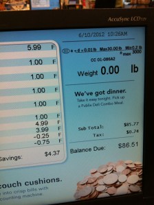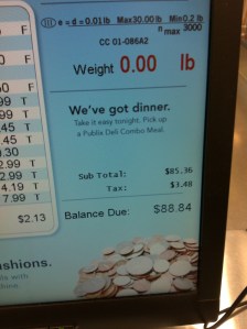 Okay, so here was my Sunday afternoon total at Publix (I used two –yes two – coupons!):
