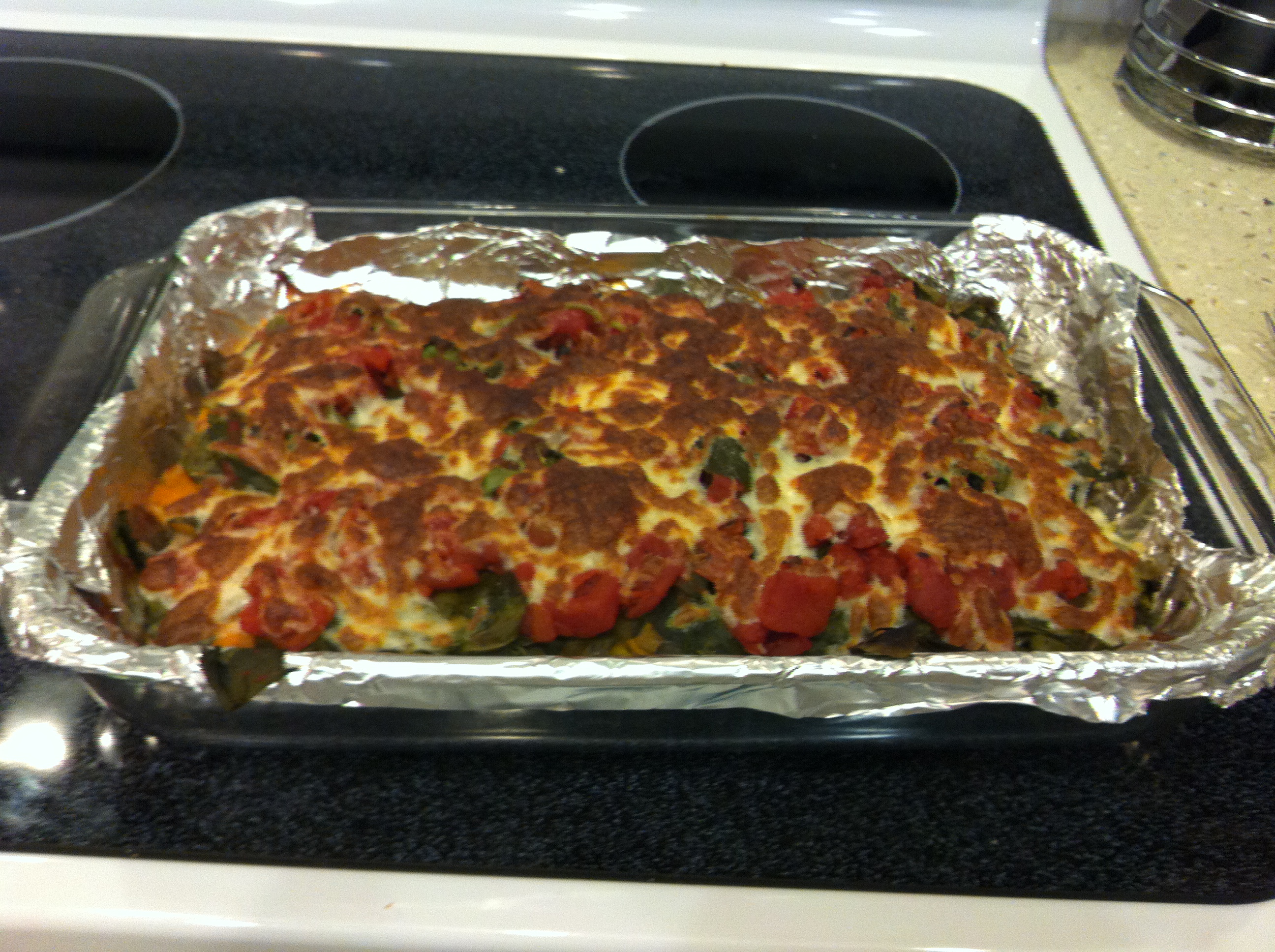 And then there was cheese.  Back in the oven uncovered under the broiler for a few minutes: