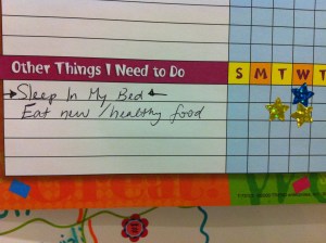 At 7:00 a.m., Dylan asked, “Is it time to wake up?” By that time, Riley’s head was nestled painfully against my left shoulder blade, so I said, “Yes.”